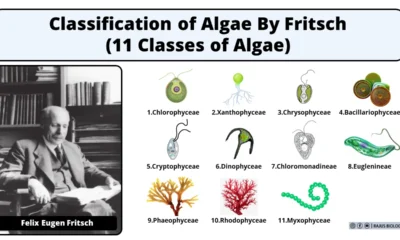 In this article we will discuss about Classification of algae by F.E. Fritsch (1935-45):- 1.Chlorophyceae, 2.Xanthophyceae, 3.Chrysophyceae, 4.Bacillariophyceae, 5.Cryptophyceae, 6.Dinophyceae, 7.Chloromonadineae, 8.Euglenineae, 9.Phaeophyceae, 10.Rhodophyceae and 11.Myxophyceae...