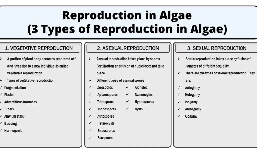 In this article we will discuss about 3 types of reproduction in algae:- 1. Vegetative reproduction in algae, 2. Asexual reproduction in algae and 2. Sexual...